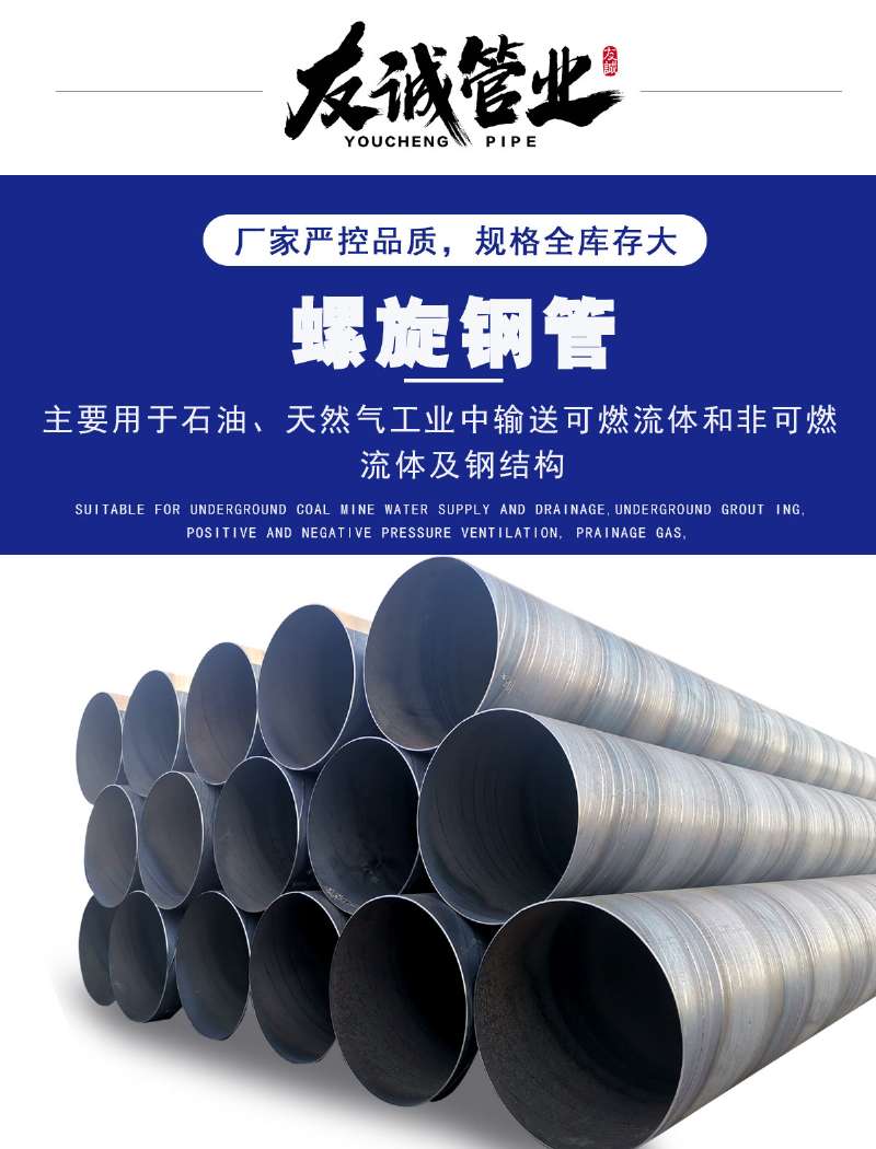 滄州友誠(chéng)管業(yè)法蘭焊接鋼管專業(yè)生產(chǎn)廠家,法蘭焊接國(guó)標(biāo)螺旋鋼管埋弧焊是以連續(xù)送時(shí)的焊絲作為電極和填充金屬。焊接時(shí),在焊接區(qū)的上面覆蓋一層顆粒狀焊劑,電弧在焊劑層下燃燒,將焊絲端部和局部母材熔化,形成焊縫。在電弧熱的作用下,上部分焊劑熔化熔渣并與液態(tài)金屬發(fā)生冶金反應(yīng)。熔渣浮在金屬熔池的表面,一方面可以保護(hù)焊縫金屬,防止空氣的污染,并與熔化金屬產(chǎn)生物理化學(xué)反應(yīng),改善焊縫金屬的萬分及性能;另一方面還可以使焊縫金屬緩慢泠卻。埋弧焊可以采用較大的焊接電流。與手弧焊相比,其*da的優(yōu)點(diǎn)是焊縫質(zhì)量好,焊接速度高。因此,它特別適于焊接大型工件的直縫的環(huán)縫。而且多數(shù)采用機(jī)械化焊接。埋弧焊已廣泛用于碳鋼、低合金結(jié)構(gòu)鋼和不銹鋼的焊接。由于熔渣可降低接頭冷卻速度,故某些高強(qiáng)度結(jié)構(gòu)鋼、高碳鋼等也可采用埋弧焊焊接。埋弧焊鋼管:是以帶鋼卷板為原材料,經(jīng)常溫?cái)D壓成型,以自動(dòng)雙絲雙面埋弧焊工藝焊接而成的螺旋縫鋼管。埋弧焊螺旋鋼管是以連續(xù)焊絲作為電極和填充金屬,工作時(shí)在焊接區(qū)的上面覆蓋一層顆粒狀焊劑,電弧在焊劑層下燃燒,將焊絲端部和局部母材熔化,形成焊縫在電弧熱的作用下,上部分焊劑熔化熔渣并與液態(tài)金屬發(fā)生冶金反應(yīng)。熔渣浮在金屬熔池的表面,一方面可以保 護(hù)焊縫金屬,防止空氣的污染,并與熔化金屬產(chǎn)生物理化學(xué)反應(yīng),改善焊縫金屬的萬分及性能;另一方面還可以 使焊縫金屬緩慢泠卻。